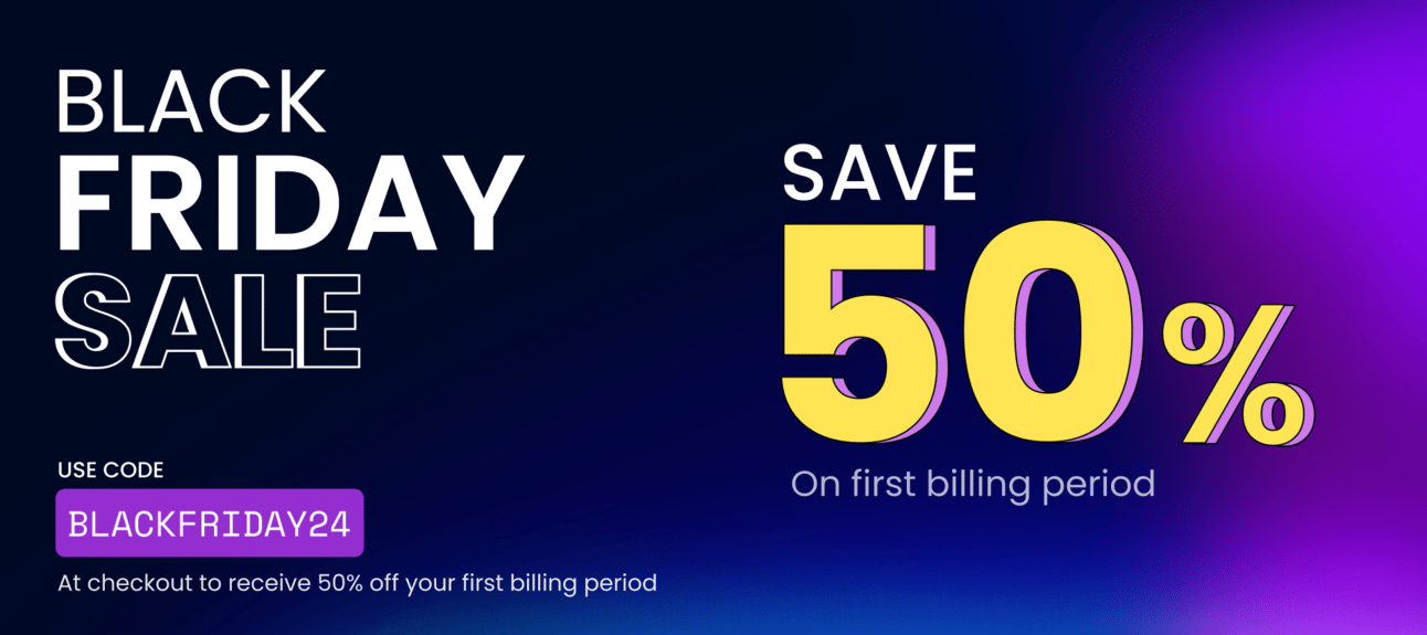 Get 50% off all plans for Black Friday (offer live until December 7th)